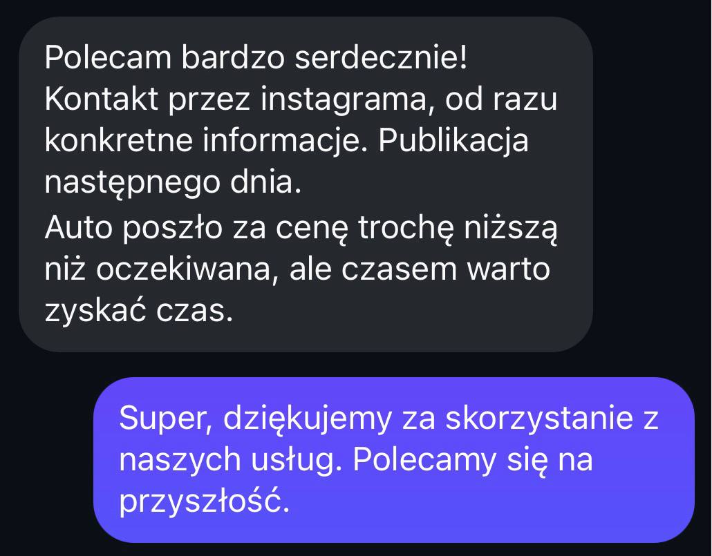 Masz już ogłoszenie na OtoMoto? Wyślij nam link. Nie masz? Prześlij zdjęcia i podstawowe dane auta. Instagram, Telegram, WhatsApp - jak Ci wygodnie.